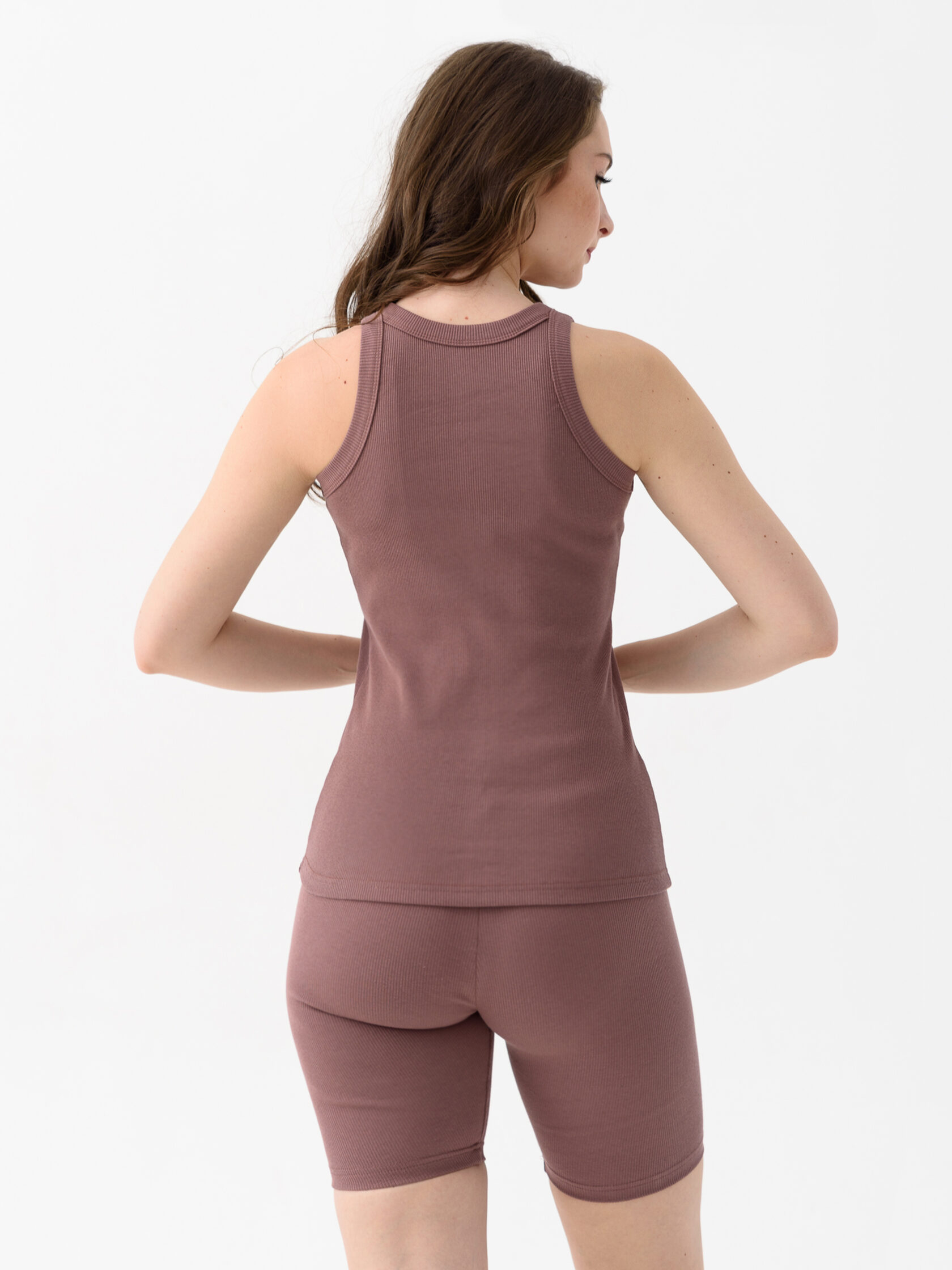Майка женская спортивного стиля, прилегающего силуэта, из трикотажного х/б полотна с выработкой «рубчик».