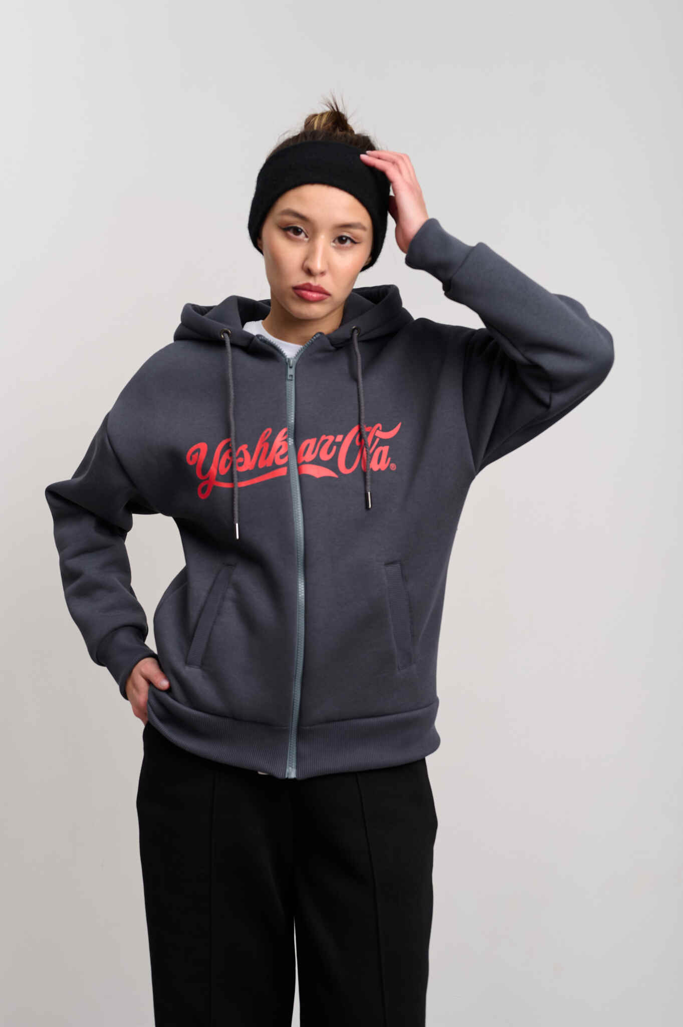 Артикул: Т-МОЛН-ЖЕН-ЙОШК-КК-СЕР Толстовка женская на молнии "Yoshkar-Ola" серый