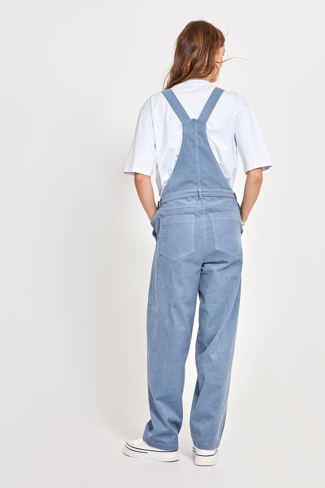 - сзади низ комбинезона с кокеткой и накладными карманами