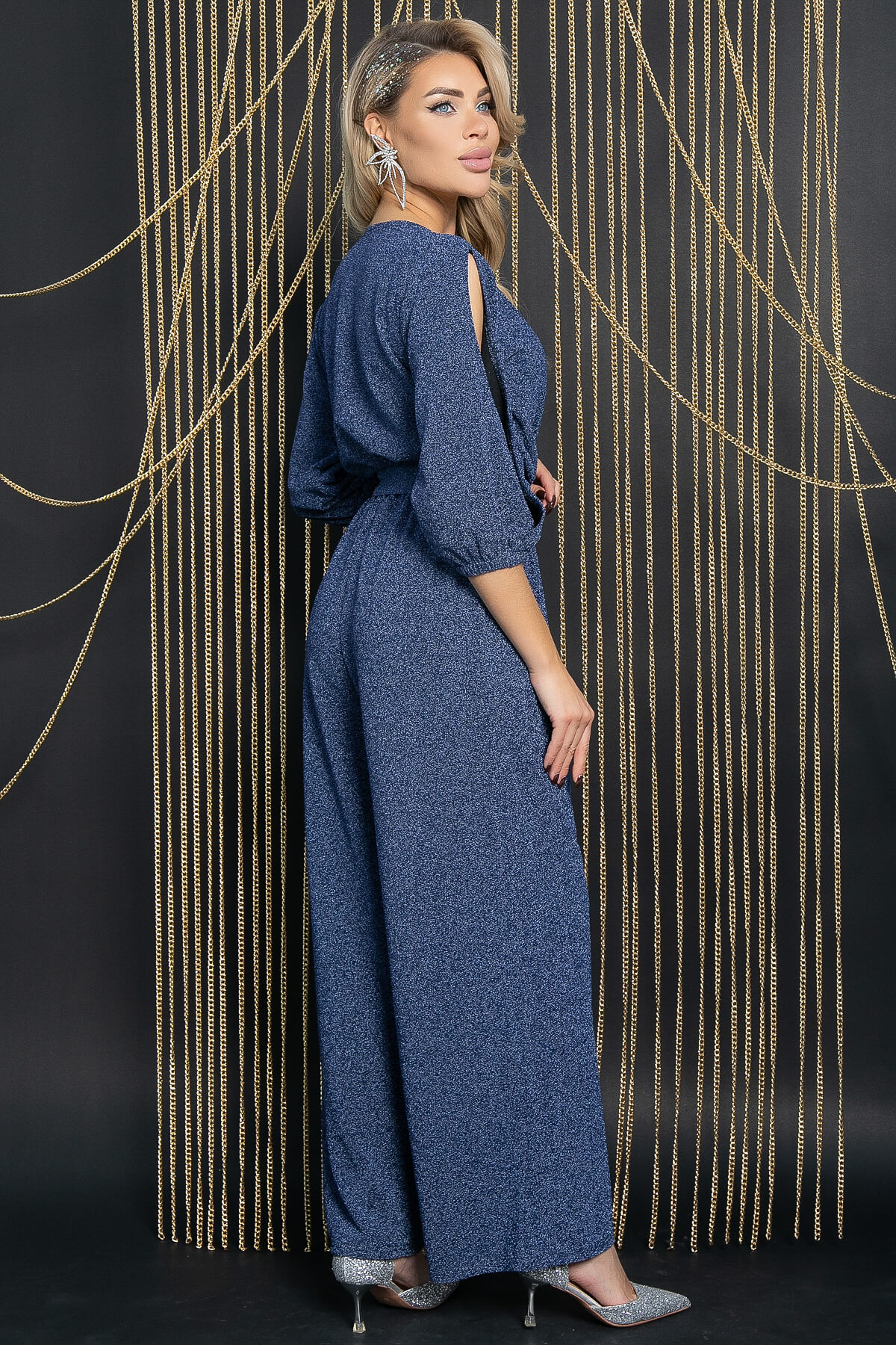 Роскошный комбинезон для любого торжества, который не оставит вас без внимания окружающих. V-образный вырез на запахе идеально подчёркивает зону декольте. Рукав втачной три четверти, с овальным вырезом, собран по низу на резинку. Широкие брюки с идеальной длиной для каблука. Мягкий пояс из ткани подчеркнёт вашу талию. В таком комбинезоне вы будете неотразимой и чувственной.