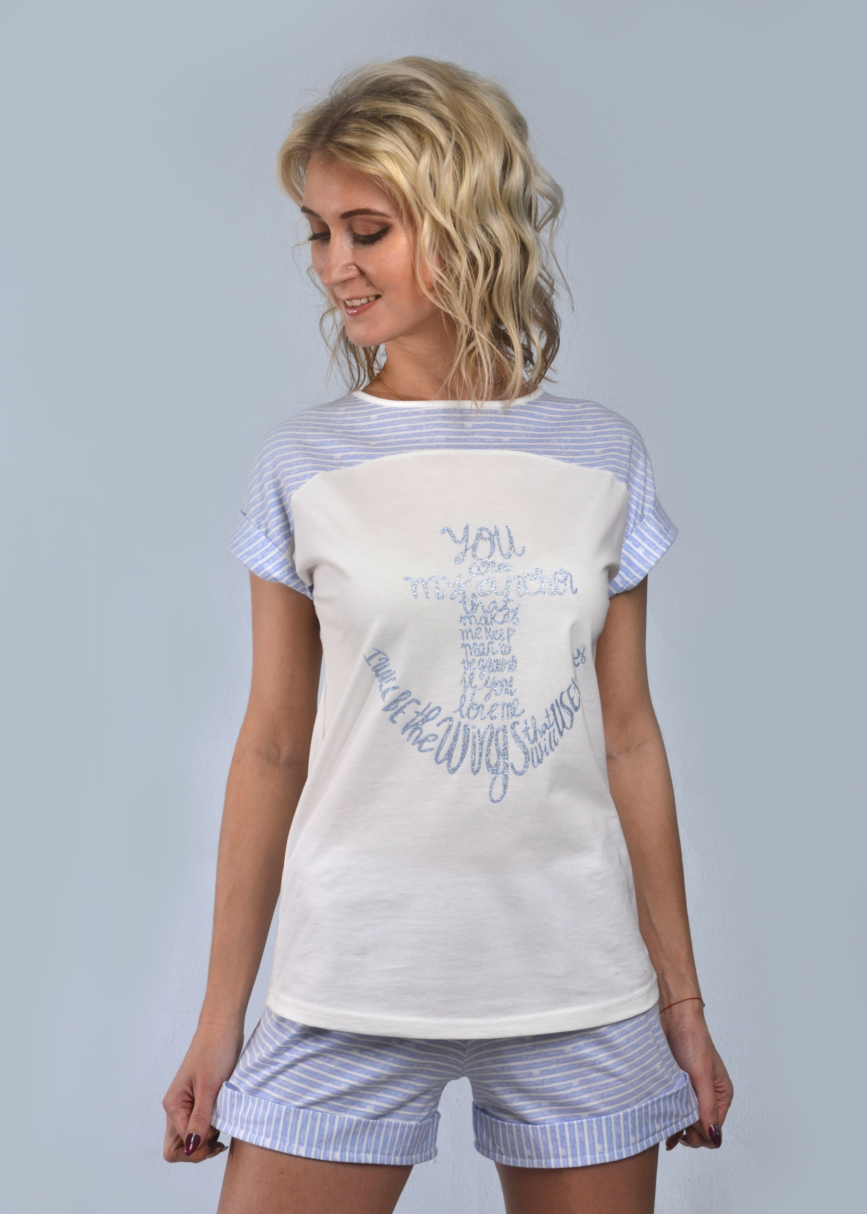Комплект с шортами "МОРЯЧКА" (голубой №10) печать с эффектом мерцания
