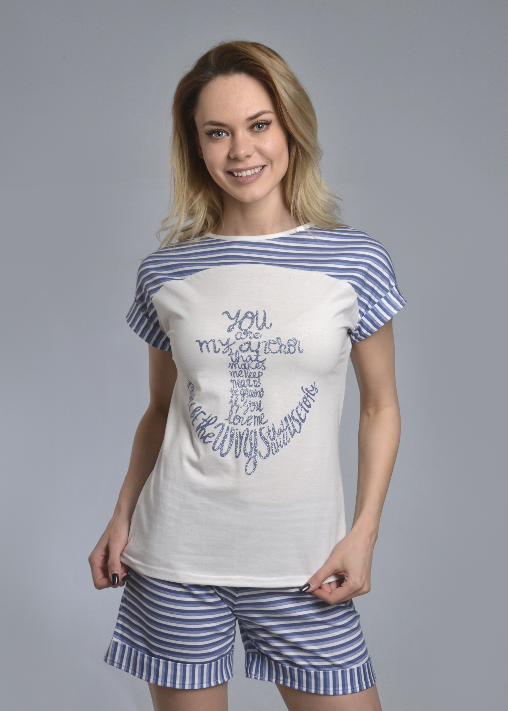 Комплект с шортами "МОРЯЧКА" (темно синий №15) печать с эффектом мерцания