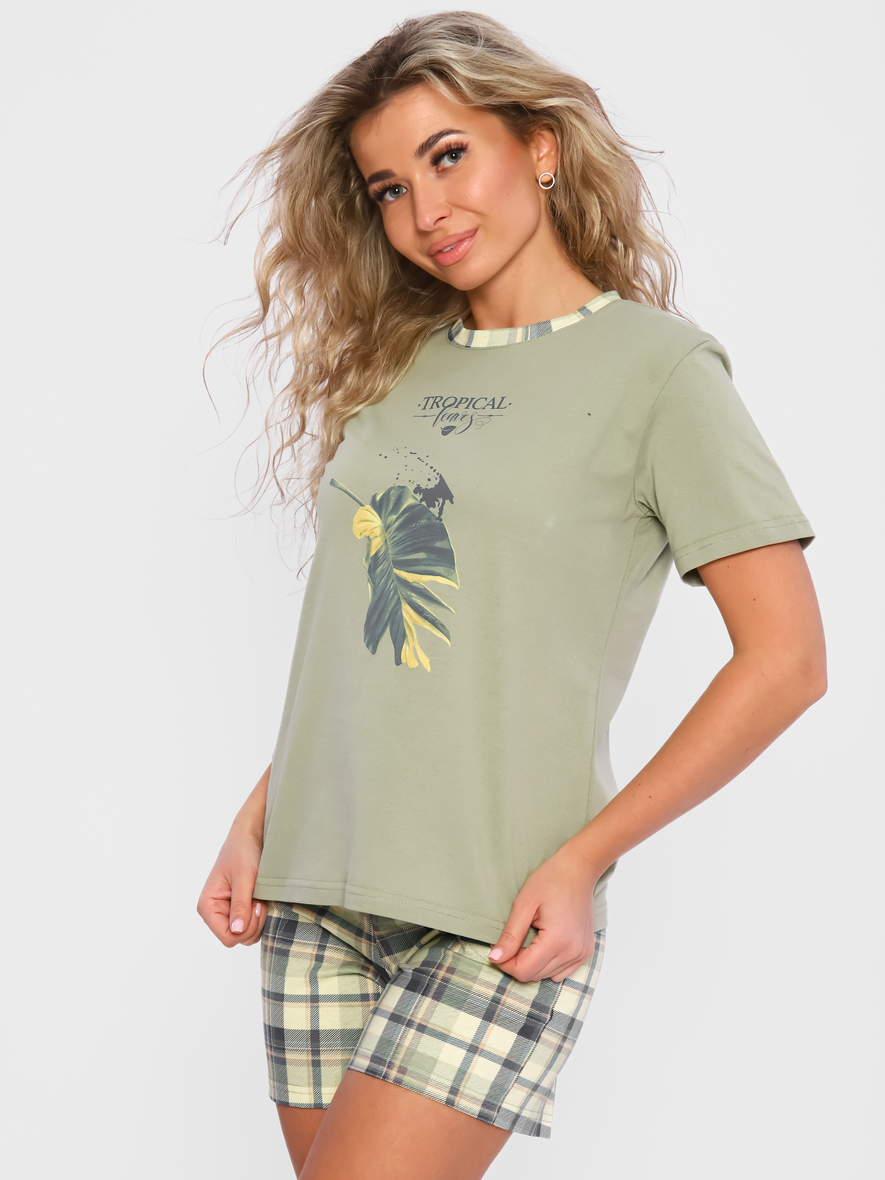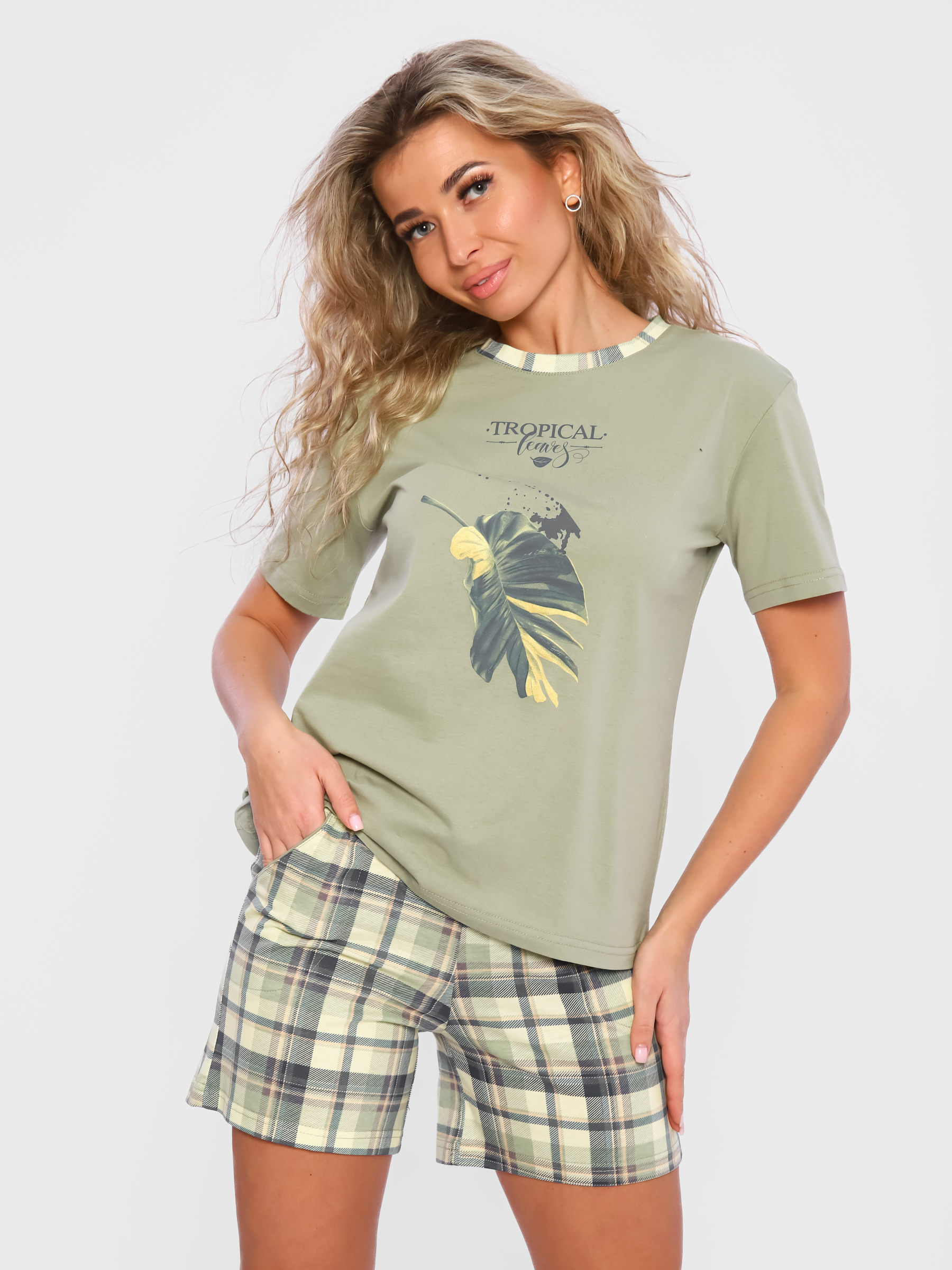 Хлопок 100%. Костюм в целом понравился (покупала для сада), но на мой размер 46/48 шорты маловаты, наверное больше на 46 пойдет. Кофточка свободная, вот ее можно носить и комбинировать с юбкой/брюками. пока не стирала - посмотрим как себя поведет после стирки и цвет и ткань.