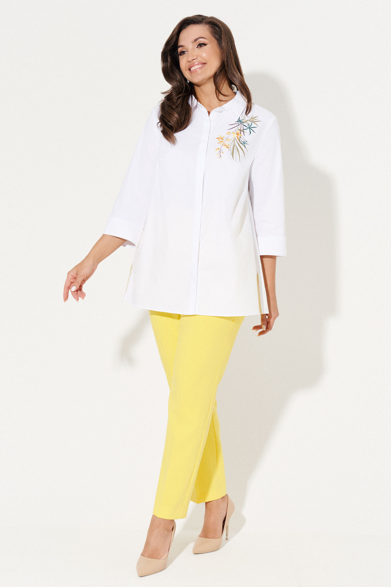 Этот стильный женский комплект состоит из блузки и брюк, идеально подходящих для повседневной носки.