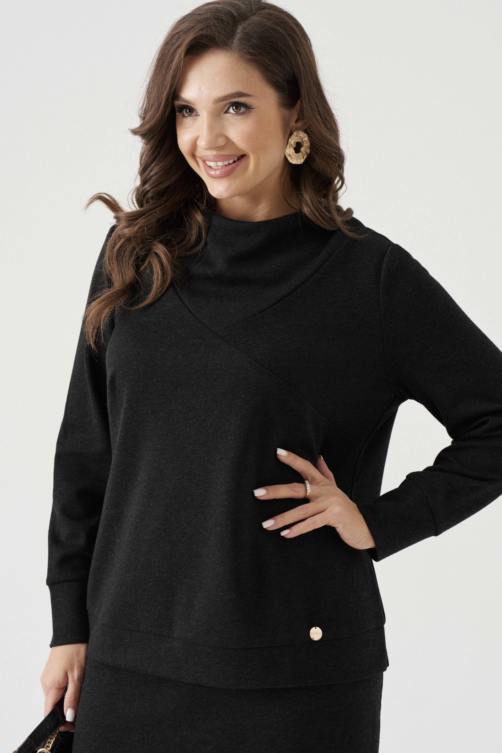 Джемпер прямого силуэта с втачными длинными рукавами с высокими отрезными двойными манжетами по низу. Воротник двойной мягкой формы ,оформлен в резы фигурной вормы,выполненные по переду и спинке