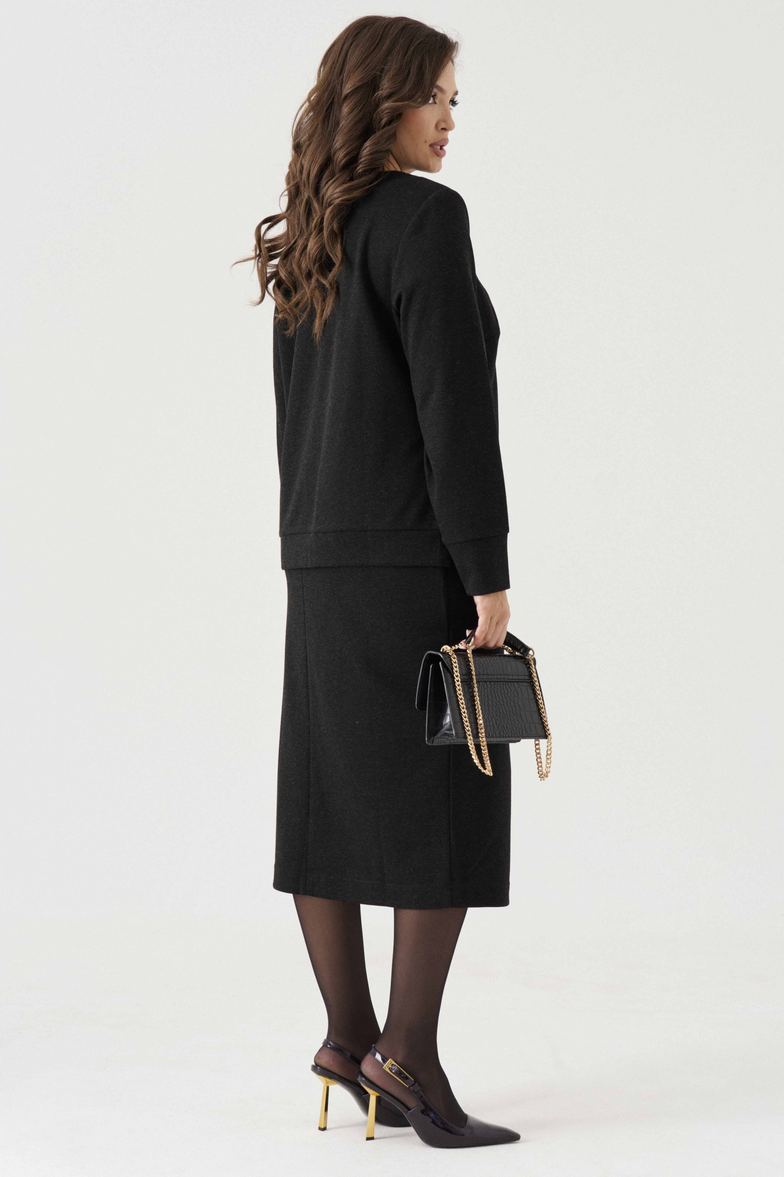 Юбка -карандаш длиной до середины голени также выполнена из мягкого и формоустойчивого трикотажного полотна.На поясе с резинкой .От боковых швов спереди оформлены косые входы во внутренние карманы.Мешковины карманов настрочены на переднее полотнище юбки изнутри. Прекрасный стильный костюм подойдёт как для работы,так и на каждый день для энергичной девушки,которая ценит в одежде элегантность,сдеожанность и комфорт.
