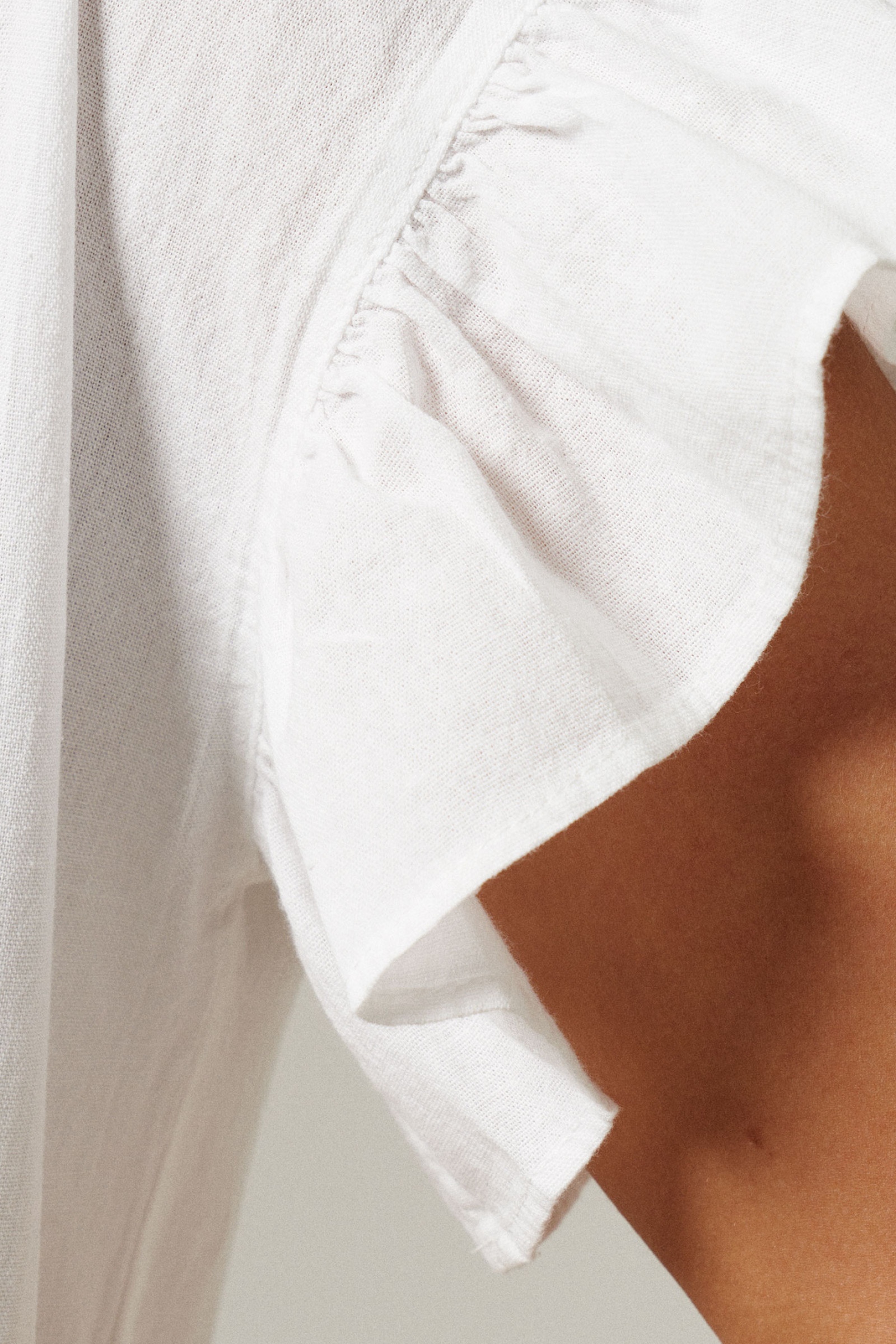 Платье из хлопковой ткани для повседневной носки. Изделие прямого силуэта с коротким цельнокроеным рукавом оформленым притачной рюшей. Платье длиной до колена. Изделие укомплектовано нижним платьем из вискозной ткани.