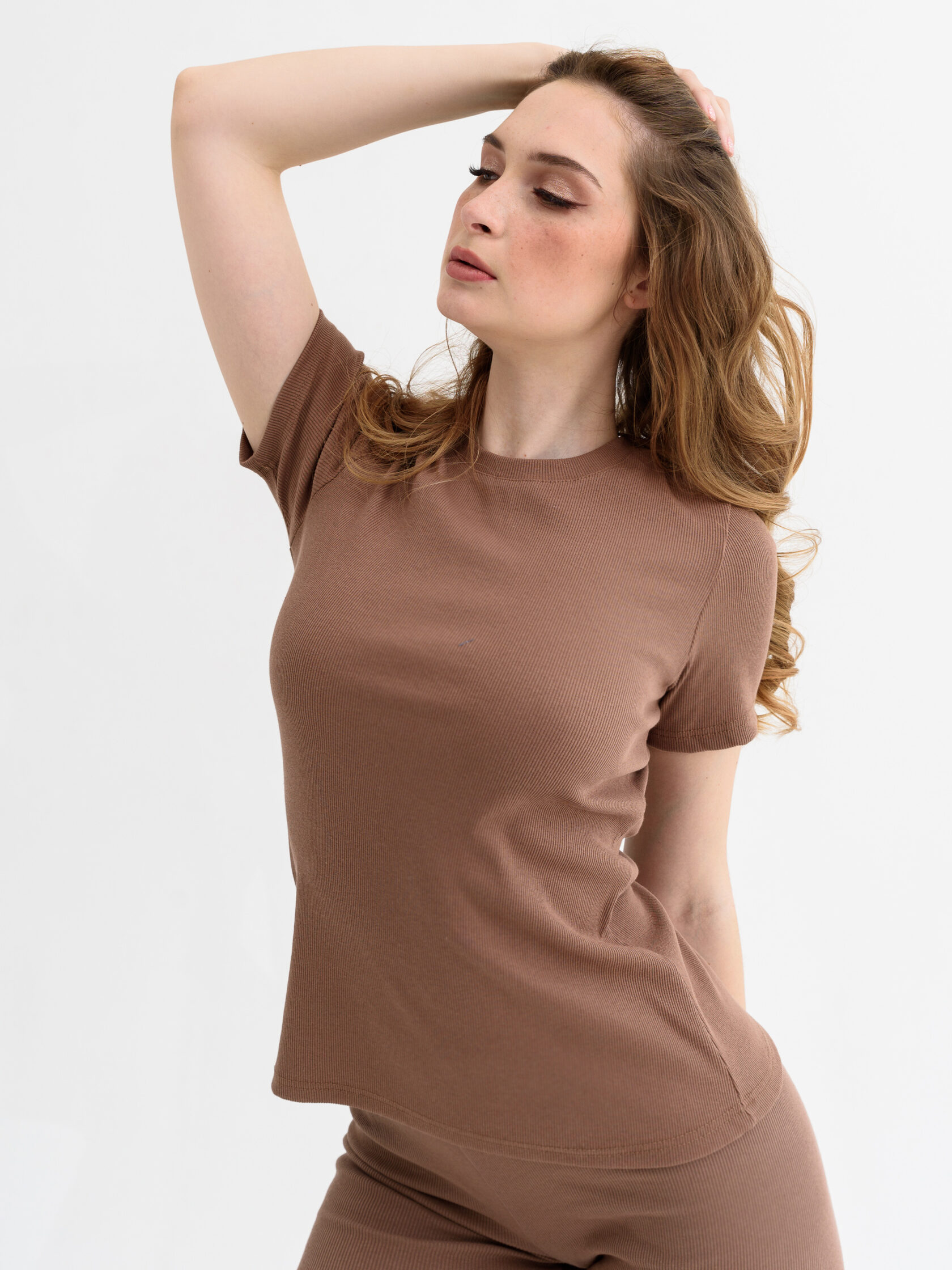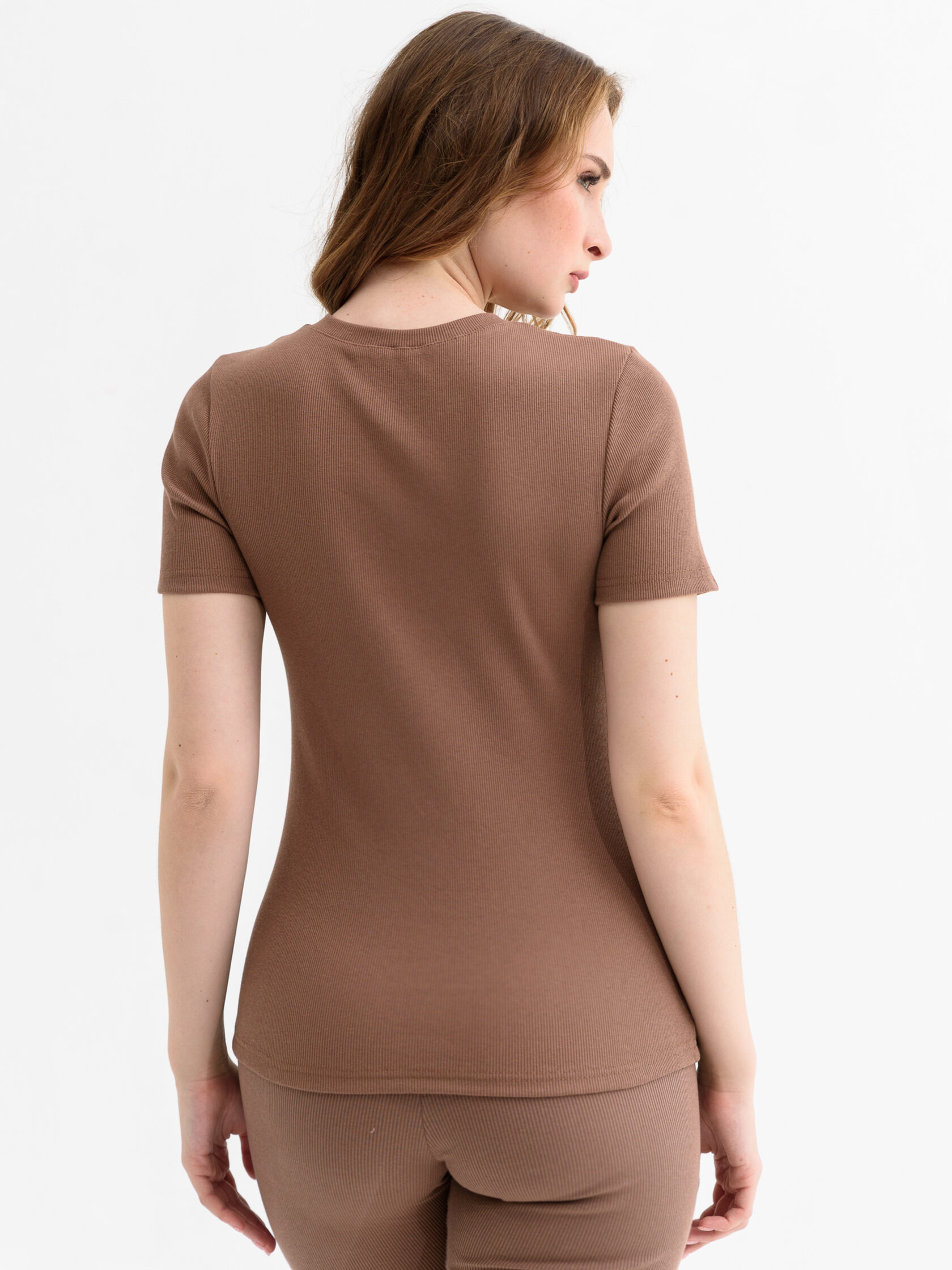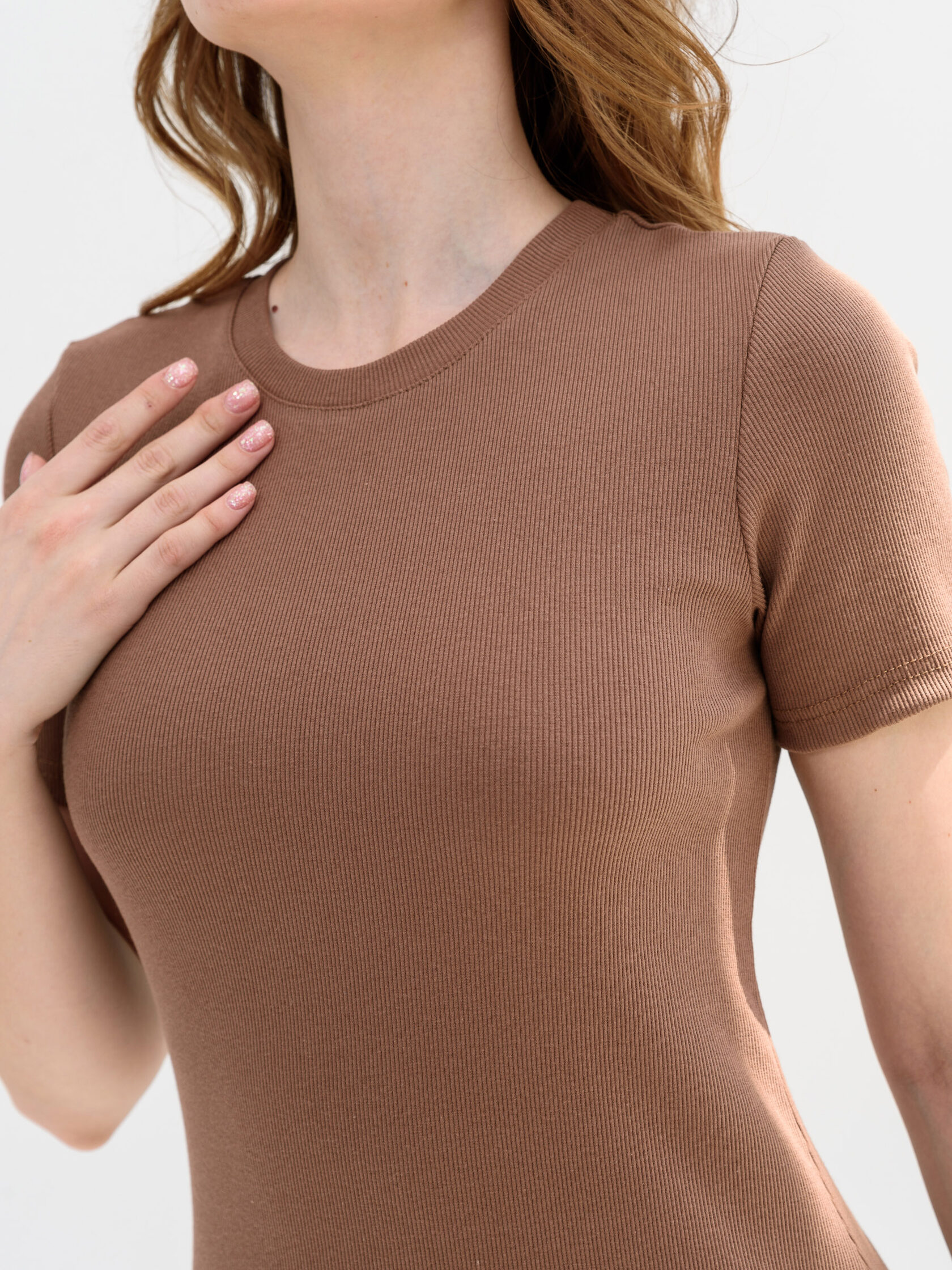 Футболка женская спортивного стиля, прилегающего силуэта, из трикотажного х/б полотна с выработкой «рубчик».