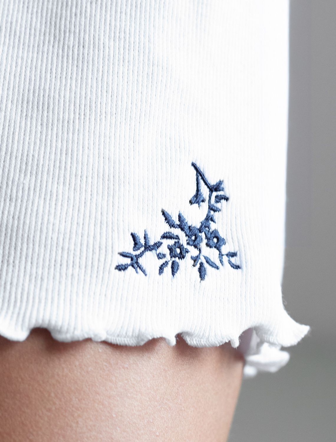 Короткие шорты на резинке с вышивкой из фактурного трикотажа в мелкий рубчик D48.011 белый_цветы
