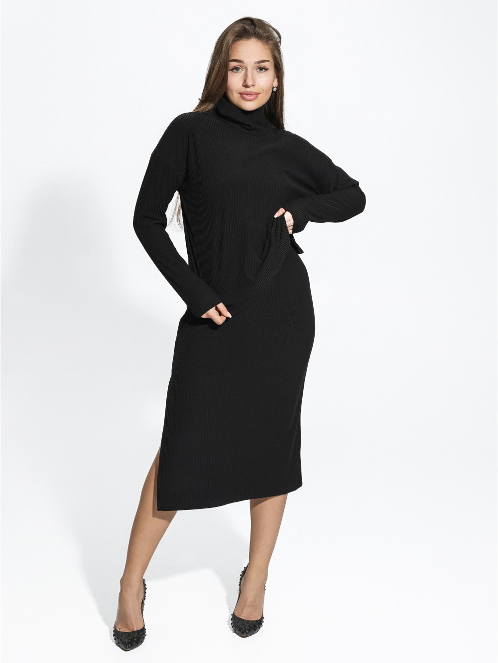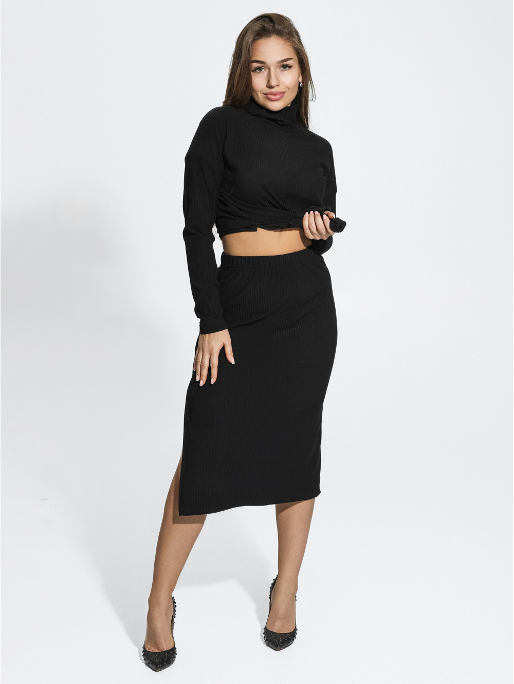 Юбка прямого силуэта с цельнокроеным поясом и разрезом в левом боковом шве.