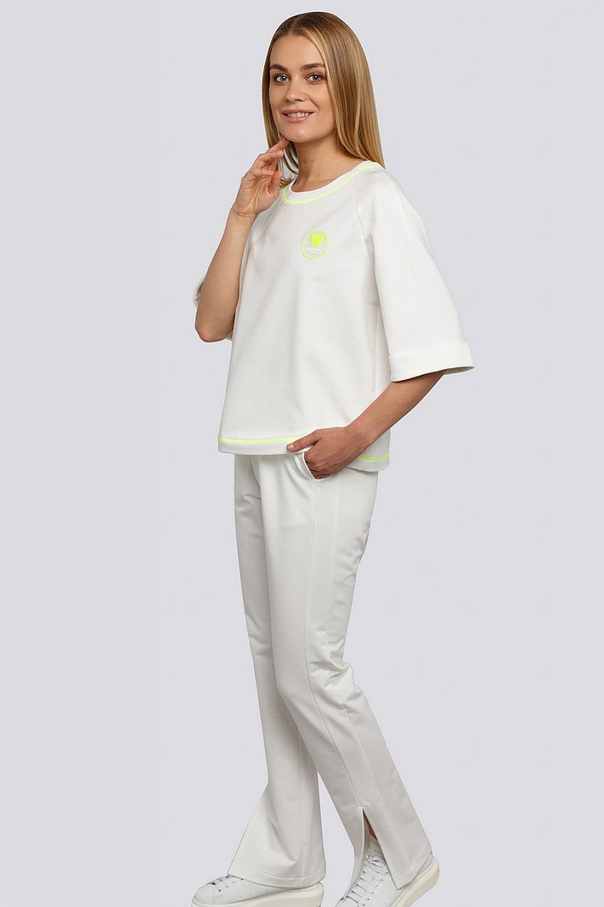 Стильный и изысканный костюм, состоящий из свободных брюк и футболки. Брюки свободные, по низу, с боков разрезы. По верху на резинке. Кармашки в шве.