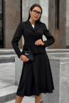 Этот деловой костюм идеально подойдёт для офиса, бизнес-встреч, переговоров и официальных мероприятий. Также он будет уместен на торжественном приёме или светском выходе. Силуэт подчеркивает фигуру, не сковывая движений. Вариант для женщин, предпочитающих классический стиль с нотками актуальных трендов.