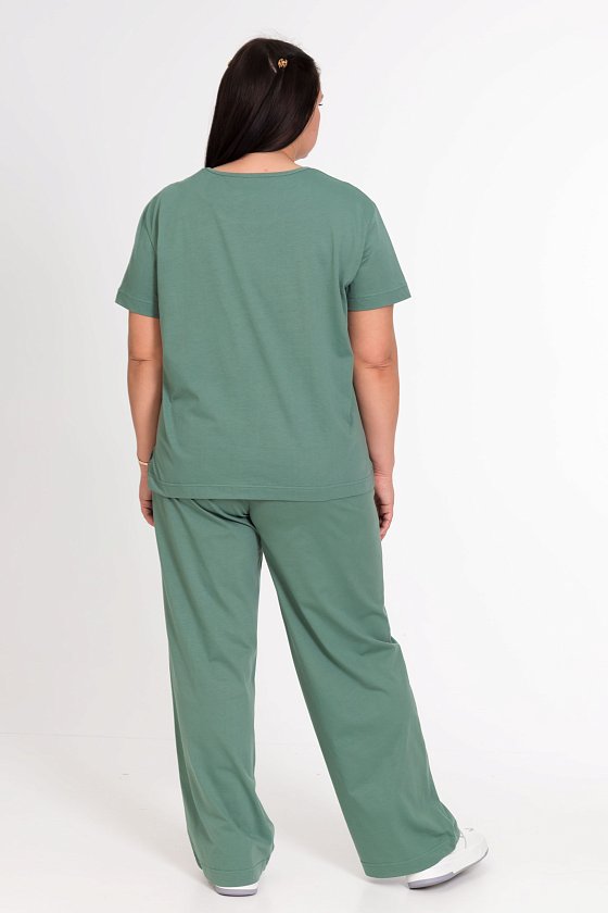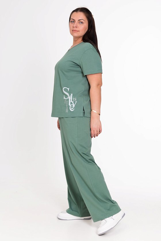 Брюки - свободные, пояс на резинке, боковые карманы.