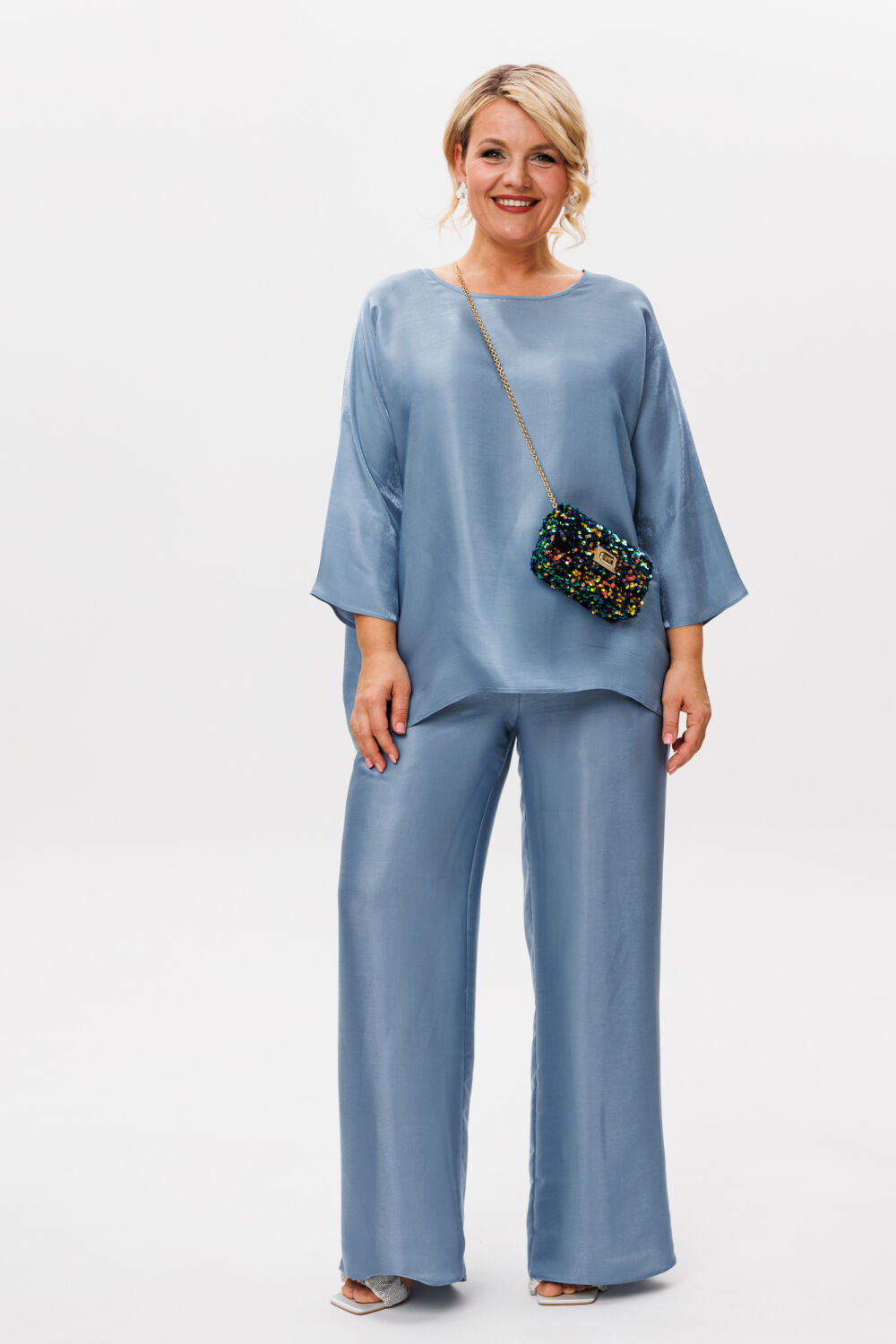 Оригинальный костюм от бренда Anastasia - идеальный выбор для любого случая. Костюм женский 2-х предметный (блузка, брюки) из легкой вискозной ткани с блеском. Блузка прямого силуэта с цельнокроеным рукавом. Брюки прямые, пояс на резинке, по бокам карманы. Костюм отлично подойдет как для повседневной носки, так и для праздничных выходов. Достаточно дополнить его соответствующими аксессуарами. Предметы комплекта легко будут сочетаться с вещами из Вашего гардероба. Длина блузки (по спинке): (48-52)-66см.,(54-58)-69см. Длина рукава (от горловины): (48-52)-57см., (54-58)-59см. Длина брюк: (48-52)-100см., (54-58)-103см.