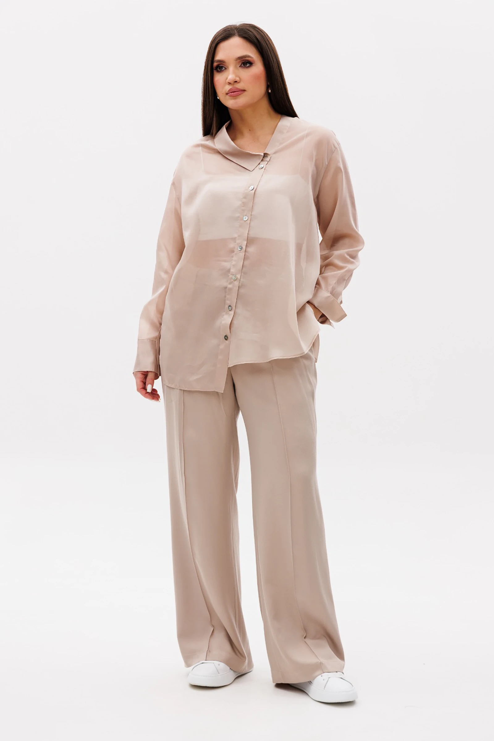 рубашка: тенсил 90%, пэ 10%; брюки: пэ 64%, вискоза 34%, спандекс 2%. бежевый