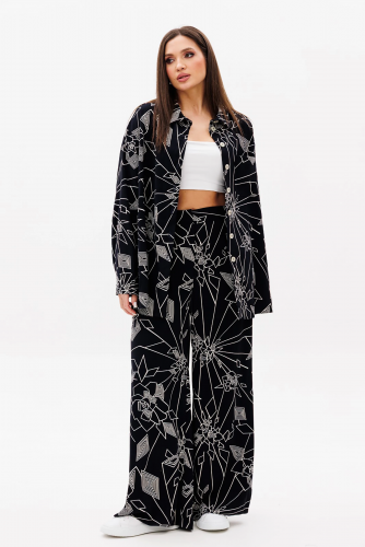 Модные тенденции 2024-2025 буквально стёрли границы правил в составлении тотал-луков и вдохнули в термин монохром его истинный смысл. Великолепная двойка: брюки и блуза в одном цвете, но из разнофактурных материалов. Нарочитая женственность, подчеркнутая полупрозрачностью верха и пластичностью брюк. Брюки свободного покроя, высокой посадки с притачным поясом со шлёвками и дополнительным съёмным поясом с пряжкой. Передние половинки брюк со стрелкой-защипом и боковыми наклонными карманами. На задних половинках брюк - прорезной карман с кисточкой. Блуза свободного кроя с рубашечным рукавом, ассиметричной застёжкой, разноуровневым низом, рубашечным воротником. Рукав с притачной манжетой и застежкой на петли и пуговицы. Длина брюк около 105 см. Длина рубашки около 70 см. Длина рукава около 60 см.