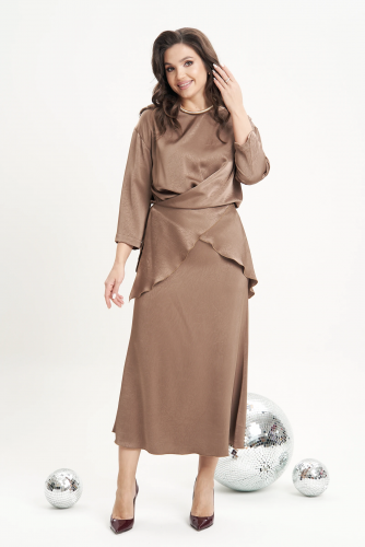Невероятная блуза из одноимённой ткани завершает образ, превращая его в платье или даже комбинезон.