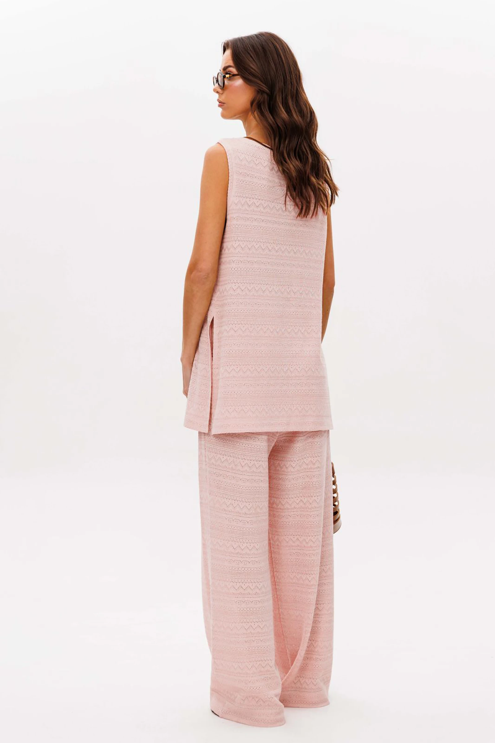 Конечно же, практичный, модный, стильный и комфортный брючный комплект из ажурного х/б трикотажа.
