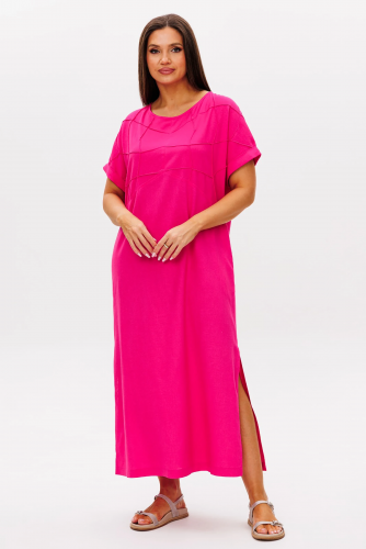Туника свободная, без рукава, с V-образным вырезом и высокими боковыми разрезами.