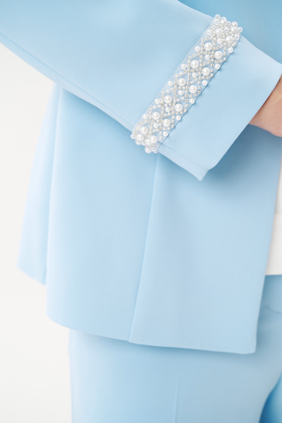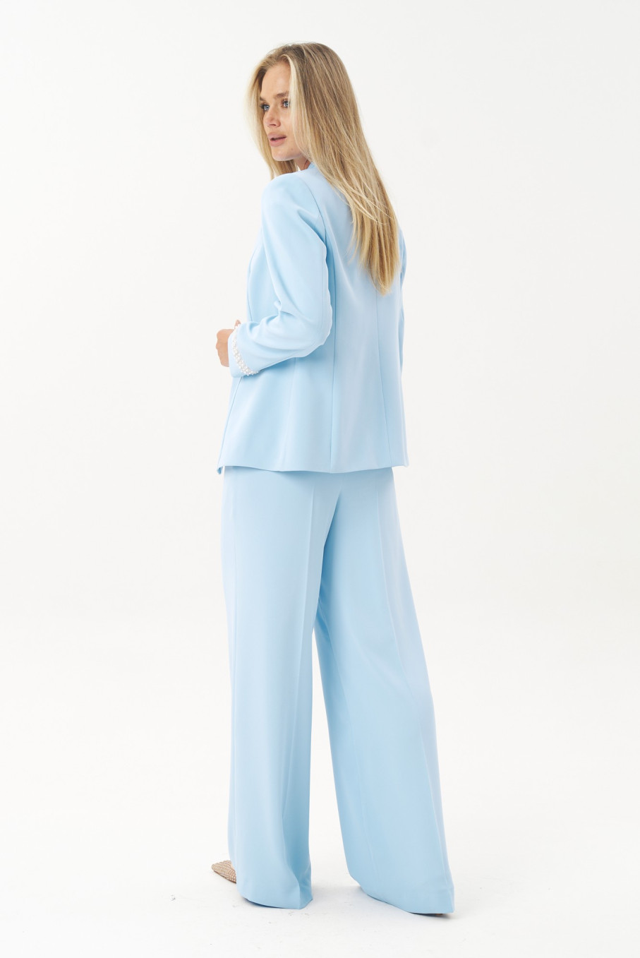 Голубой костюм женский брючный праздничный URS - это современный взгляд на классику, в которой сочетаются элегантность, женственность и уверенность. Такой брючный костюм женский праздничный легко заменяет платье на торжестве и при этом дарит комфорт на протяжении всего дня. Женский костюм выглядит нарядно, но остается универсальным для разных событий.