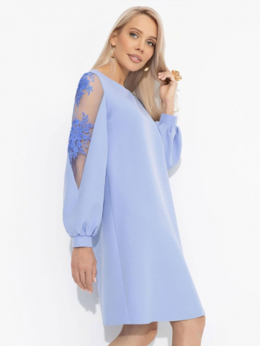 Блузка, без воротника, с круглым варезом горловины, застежкой на навесную петлю и пуговицу по горловине спинки. По переду с нагрудными вытачками. По спинке со средним швом. Рукав втачной, длинный. Юбка, с отрезным поясом, застежкой на потайную молнию в левом боковом шве. Юбка плиссированная со складками гофре.