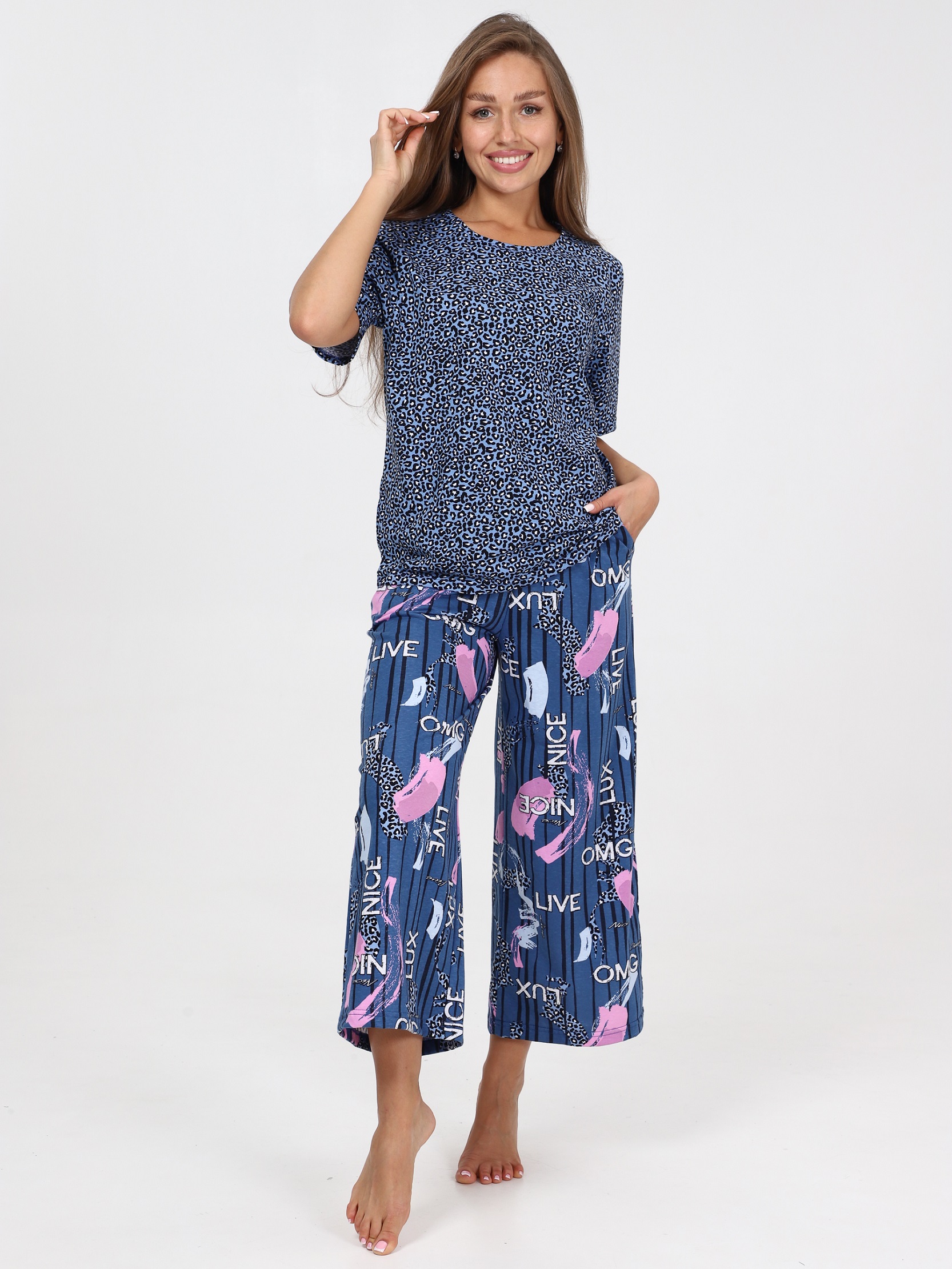Костюм с брюками кюлотами идеально подходит для использования в дачных условиях или для  дома. Наш женский домашний комплект - это идеальный выбор для женщин, идеальная пижама для сна и отдыха.