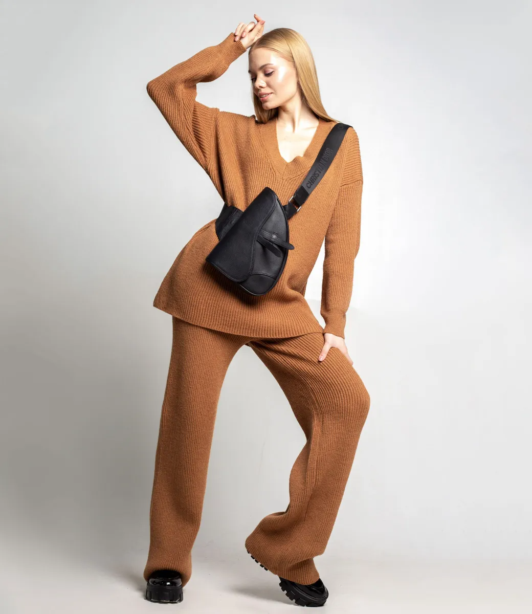 Вязанный брючный костюм незаменим в гардеробе современной девушки. Модель идеально подходит для повседневной носки, прогулок и дома. Шерсть, Полиэстер, Акрил
