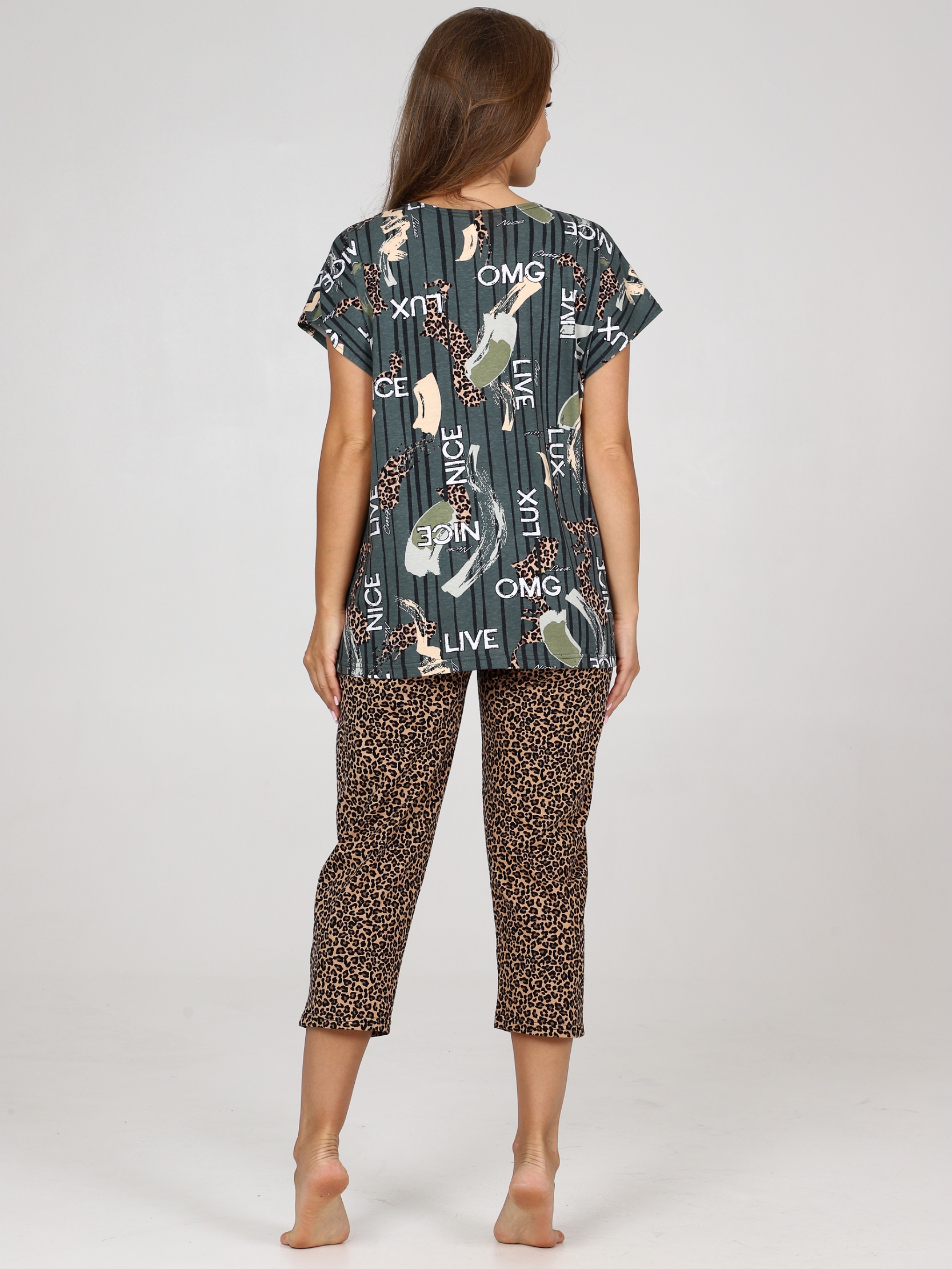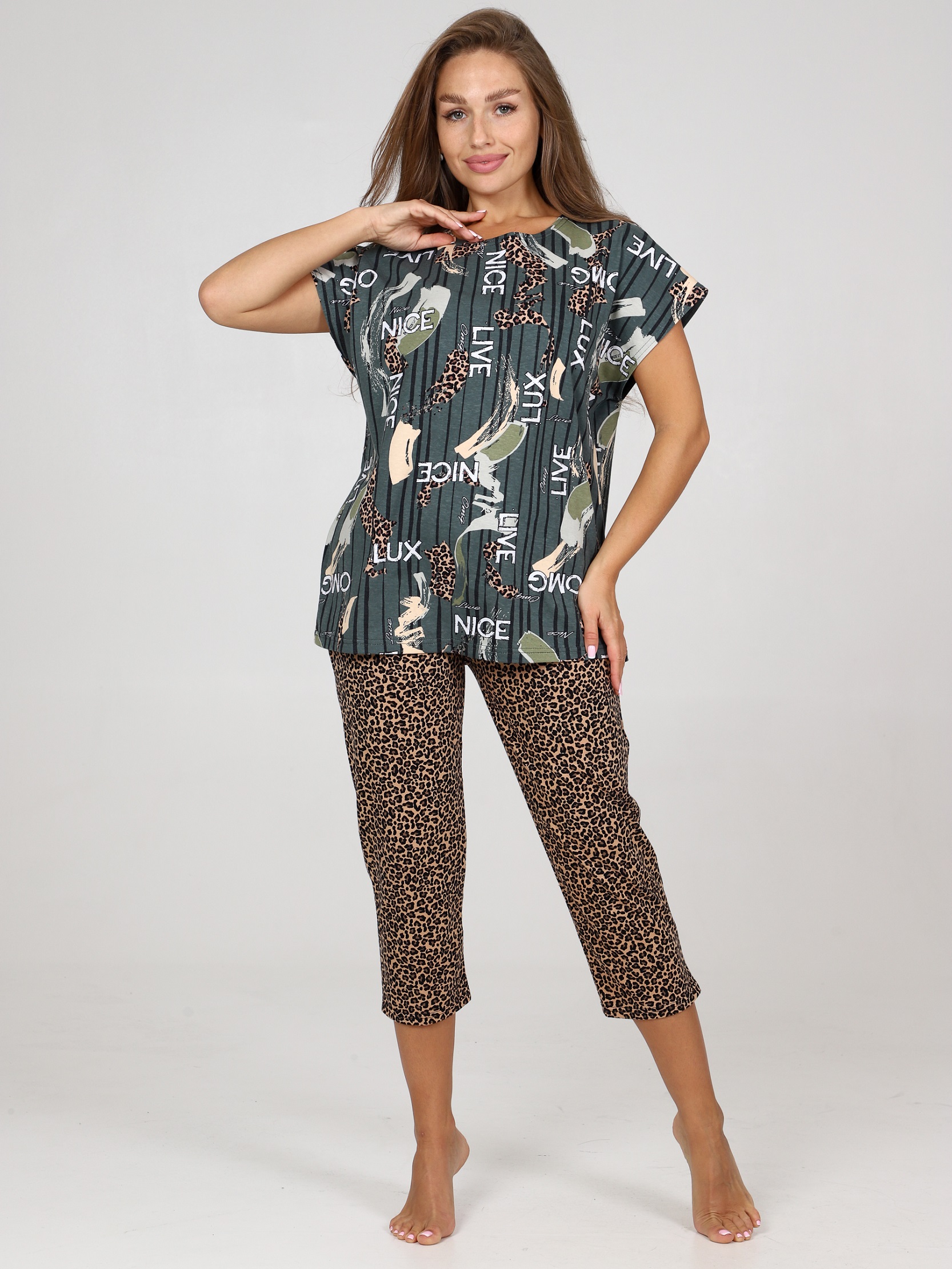 Женский комплект с бриджами - удобная и практичная одежда, а леопардовый принт делает его стильным и современным. Домашний костюм двойка имеет натуральный состав из хлопка. Ткань дышащая, мягкая и приятная к телу.