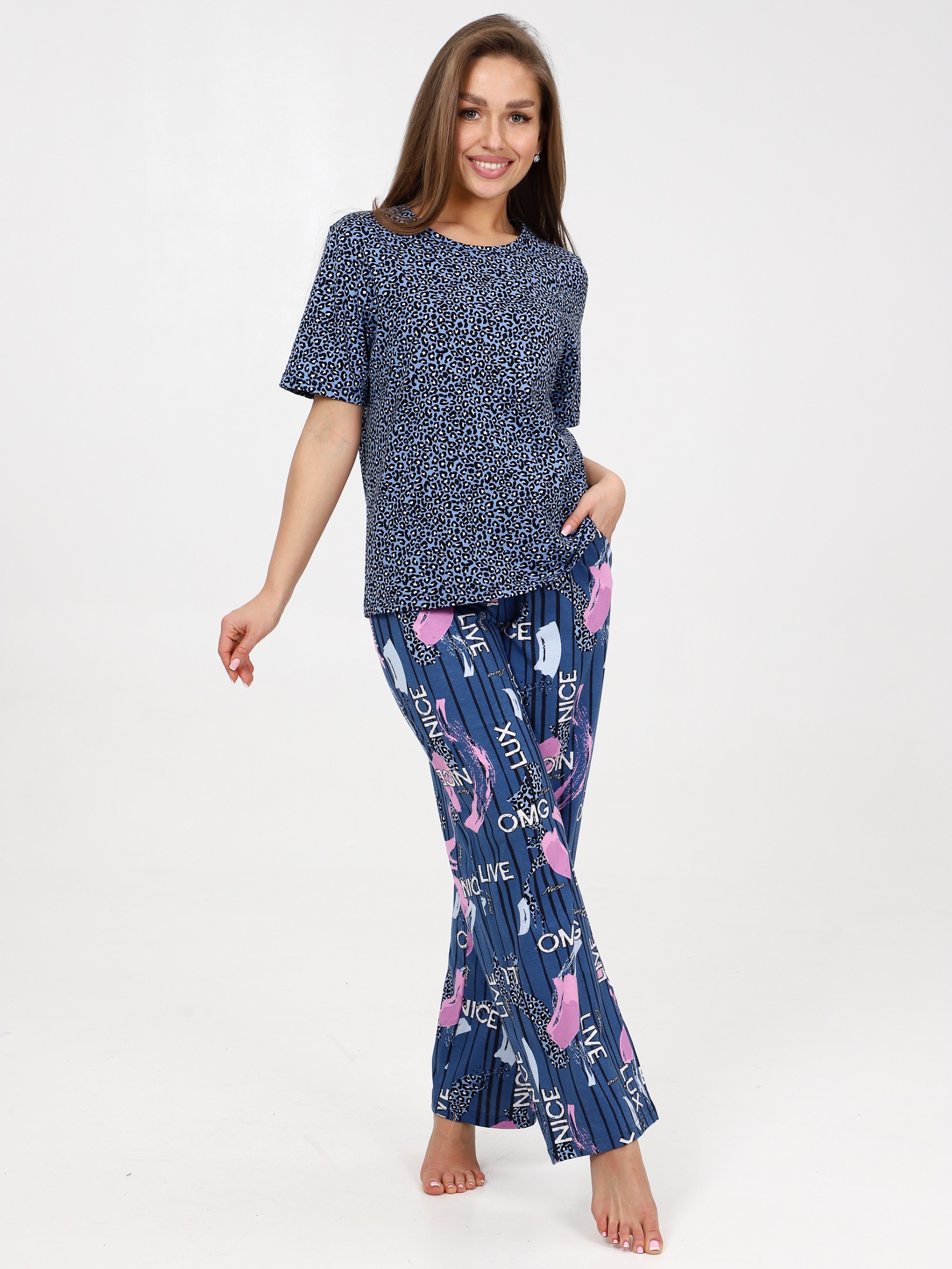 Костюм с брюками идеально подходит для использования в дачных условиях или для  дома. Наш женский домашний комплект - это идеальный выбор для женщин, идеальная пижама для сна и отдыха.