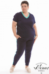 Женский костюм выполнен из вязаного полотна. Джемпер с длинными рукавами и круглым вырезом горловины. Внизу рукавов и в боковых швах джемпера разрезы. Пояс брюк на резине, по бокам расположены карманы. Хлопок 80% Полиэстер 20%