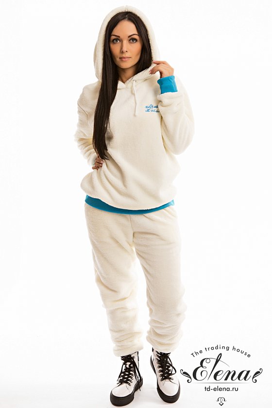 Уютный женский костюм свободной посадки выполнен из велсофта. Толстовка с длинными рукавами, накладным карманом и вышивкой спереди. Ширина капюшона регулируется при помощи шнура. Пояс брюк на резине и шнуре, по бокам размещены карманы. Низ рукавов и брюк на манжетах. Костюм из велсофта - это модный, свежий образ, такой приятный и комфортный к телу.