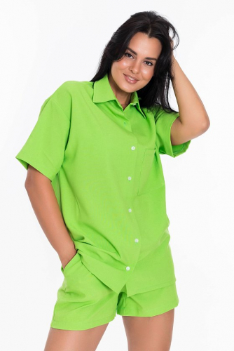 Однотонный салатовый цвет костюма добавит яркости в ваш образ.