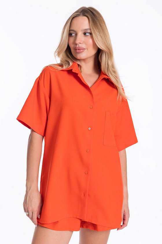 Однотонный оранжевый цвет костюма добавит яркости в ваш образ.