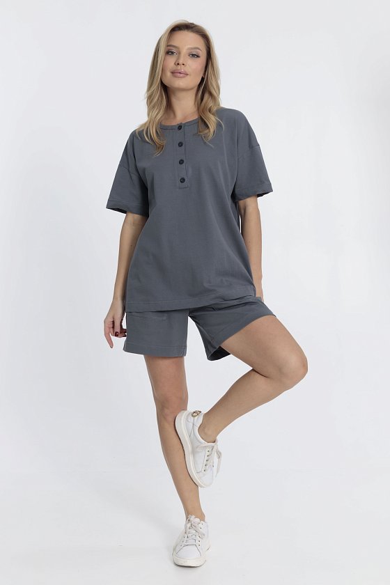 Футболка - свободный крой, спущенный рукав, круглый вырез горловины декорирован пуговицами