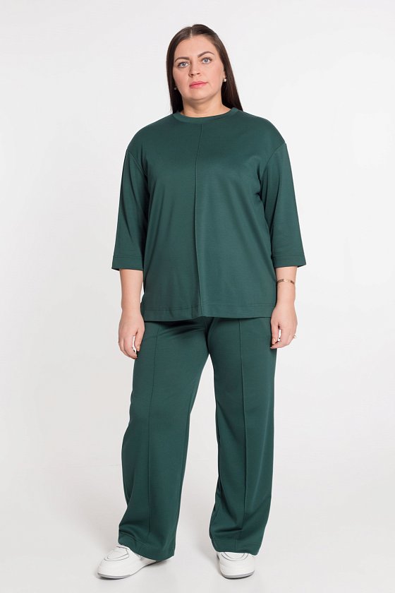 Брюки - умеренно широкие.
