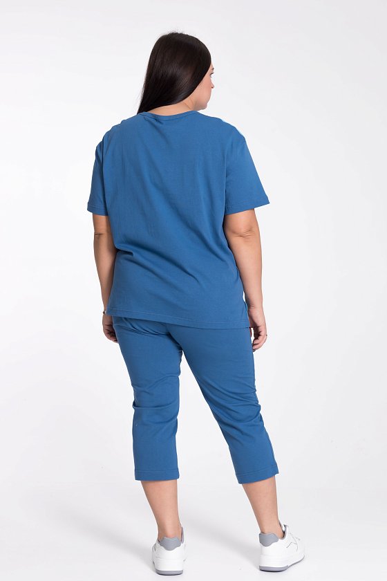 Женский костюм — отличный выбор для повседневной носки. Он состоит из футболки и капри, выполненных из хлопкового полотна.