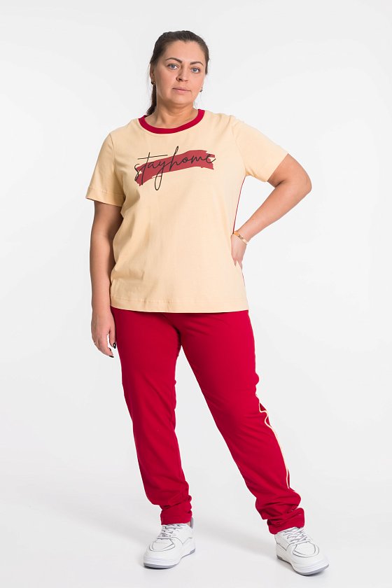 По боковым швам брюк и футболки лампасы.