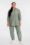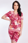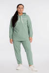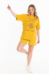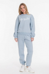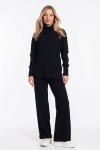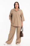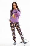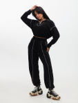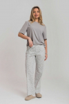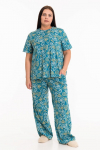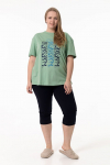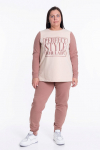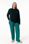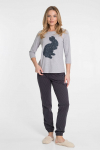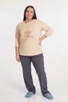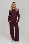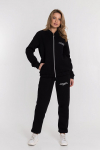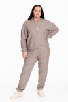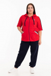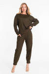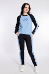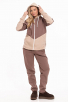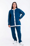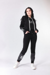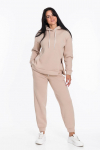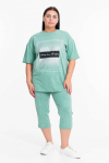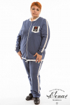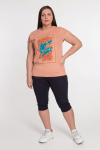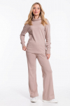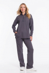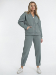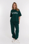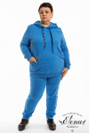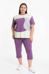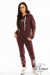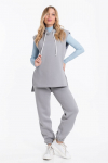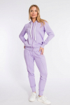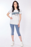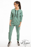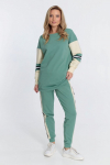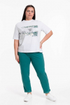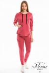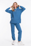 Костюм женский. Брюки из однотонного футера-петли с лайкрой с кантом в боковых швах в цвет футболки, боковые карманы, притачной пояс.