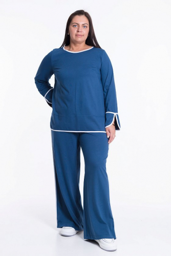 Женский костюм из футера с лайкрой — отличный выбор для повседневной носки. Толстовка свободного кроя с разрезами по бокам и удлинённой спинкой обеспечивает свободу движений, а воротник-стойка с застёжкой на молнию и спущенные рукава добавляют изделию стильный вид. Брюки свободного кроя с широким поясом на резинке и боковыми карманами также обеспечивают комфорт при носке. Костюм выполнен в сером цвете, что позволяет сочетать его с различными элементами гардероба.