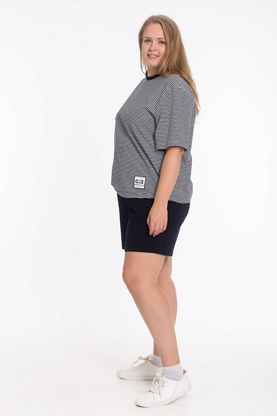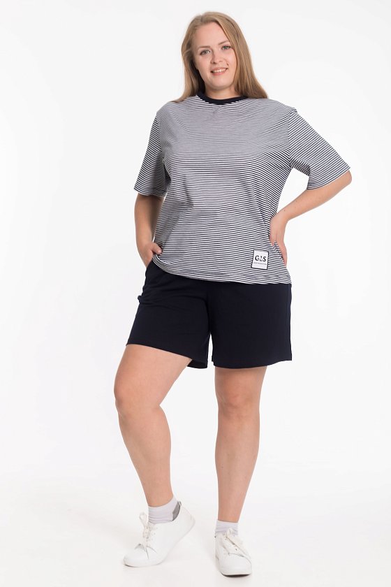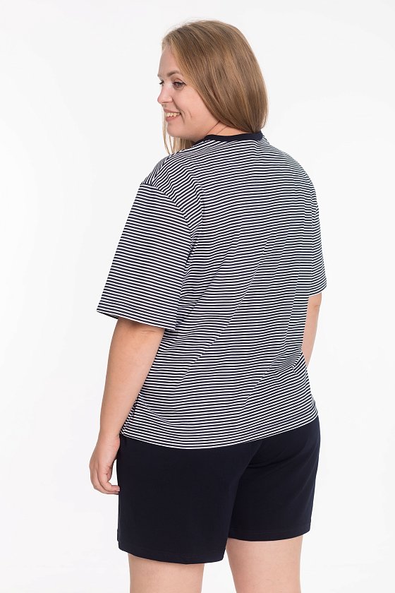 Женский костюм, состоящий из футболки и шорт, — отличный выбор для дома, отдыха и активного досуга. Футболка с коротким рукавом, горловина аккуратно обработана бейкой из отделочного полотна, спереди украшена стильной нашивкой. Шорты имеют комфортный пояс на резинке и удобные боковые карманы. Лёгкий и практичный комплект обеспечивает свободу движений и комфорт в течение всего дня.