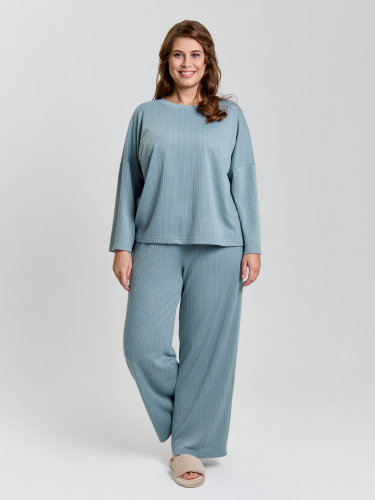 Костюм молодежный из тканого полотна муслин с набивным рисунком, состоящий из футболки и брюк. Футболка классического покроя, свободная, с короткими втачными рукавами, горловиной овальной формы, обработанной втачной планкой.