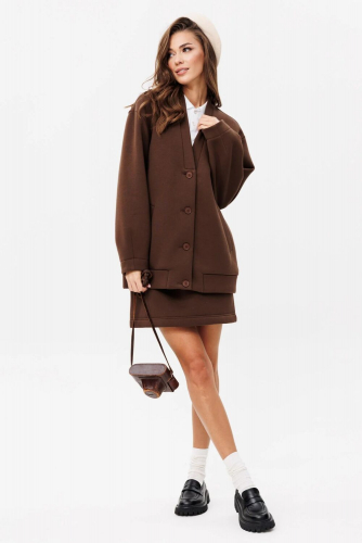 Универсальный костюм, который выглядит дорого и современно, но при этом дарит комфорт и лёгкость. Его можно носить как комплект или по отдельности: жакет с асимметричной застёжкой и акцентными пуговицами легко сочетается с джинсами, а брюки свободного кроя идеально смотрятся с блузой или футболкой.
