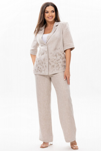 Представляем вашему вниманию вечерний женский костюм от NINELE - истинное воплощение изящества. Этот наряд собрал в себе лучшие модные свадебные тенденции: сочетание костюмной ткани с изысканным кружевом придает образу особую изысканность и стиль. Костюм идеально подойдет для свадебного торжества, вечернего мероприятия или другого особого случая, где вы захотите выглядеть неповторимо и элегантно. Особенностью данного костюма является кружевной кардиган, выполненный из кружева и основной ткани. Такой дизайн элегантно формирует правильный силуэт фигуры, подчеркивая ее достоинства.