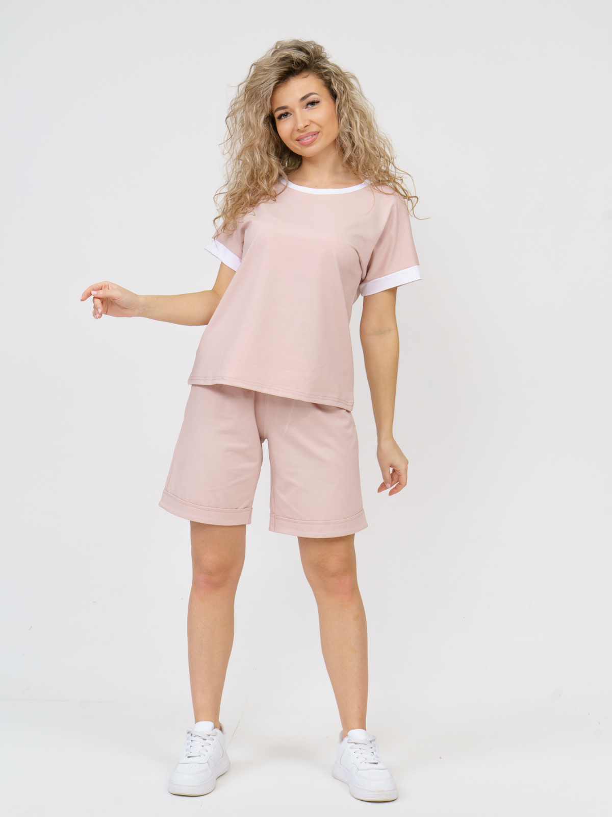 Женский костюм двойка - идеальный вариант как для повседневной носки, так и для дома и спорта. В наш универсальный комплект входит: футболка свободного кроя с коротким рукавом и шорты с завышенной талией. Кофта прямого кроя приятна к телу и не сковывает движения, а горловина с круглым вырезом визуально удлиняет шею. Широкие шорты подчеркивают бедра и отлично скрывают недостатки. Благодаря высокой посадке шорты подойдут на любой тип фигуры, а также их можно носить с любой другой одеждой. Костюм сделан из высококачественного хлопкового полотна с лайкрой.