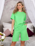 Домашний костюм с кюлотами — это идеальный выбор для тех, кто хочет выглядеть стильно и при этом чувствовать себя комфортно. Комплект состоит из футболки и широких, укороченных брюк. Изделие  имеет натуральный состав из хлопка. Ткань дышащая, мягкая и приятная к телу.