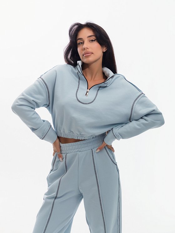 Женский костюм из футера трёхнитки "диагональ" сочетает удобство и современный дизайн. Джемпер с высоким воротником на молнии, спущенным рукавом и декоративной отстрочкой смотрится стильно и подчёркивает динамичный образ. Низ джемпера собран на резинку. Брюки на комфортном поясе-резинке также украшены контрастной отстрочкой, что делает модель ещё более выразительной. По бокам размещены карманы, низ брюк на резинке. Плотный и мягкий футер сохраняет форму и дарит уют, а актуальный фасон подойдёт как для активного отдыха, так и для повседневных выходов.