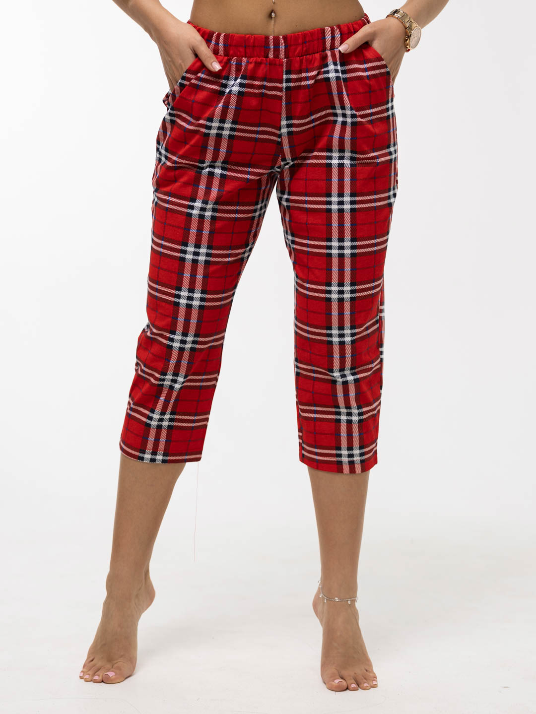 Костюм женский с бриджами. Выполнен из качественного трикотажного полотна. Футболка прямого силуэта, с округлым вырезом и коротким втачным рукавом. На полочке стильный печатный рисунок. Бриджи с поясом на резинке и удобными карамнами с отрезным бочком.