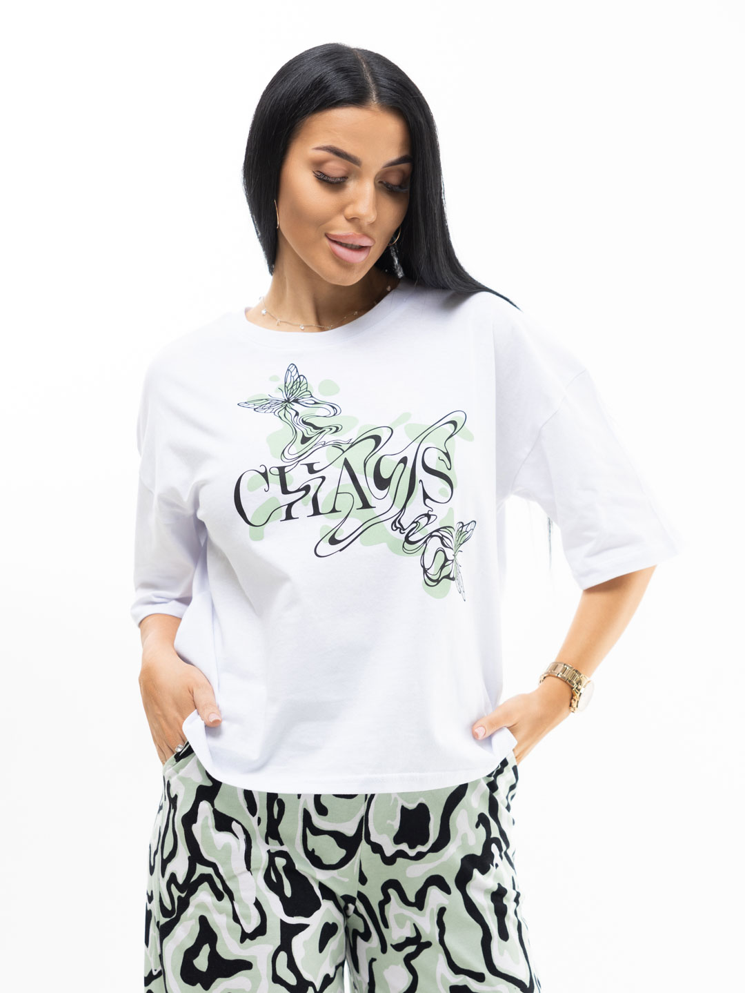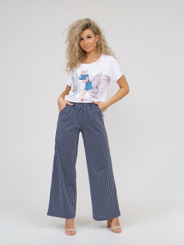 Базовый комплект с широкими штанами и крутой футболкой со спущенной линией плеча и двумя стильными печатями. Брюки выполнены из ткани с рисунком, в боковых швах карманы, на поясе декоративный атласный бантик. Принт на футболке идеально подобран к штанам. Элегантный брючный костюм позволит вам ощутить себя настоящей иконой стиля. Закажите свой уникальный пижамный костюм прямо сейчас и подчеркните свою индивидуальность.