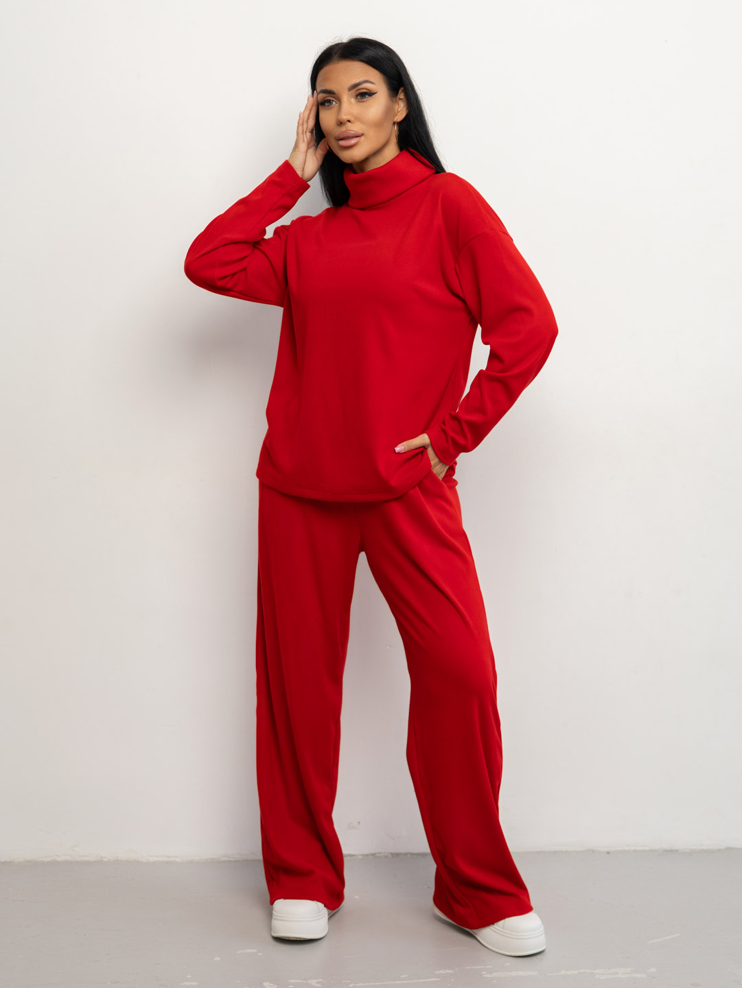 Костюм женский кашемировый свободного силуэта. Верх с длинным рукавом и воротником - стойкой. Брюки - шаровары с поясом на резинке и удобными карманами с отрезным бочком