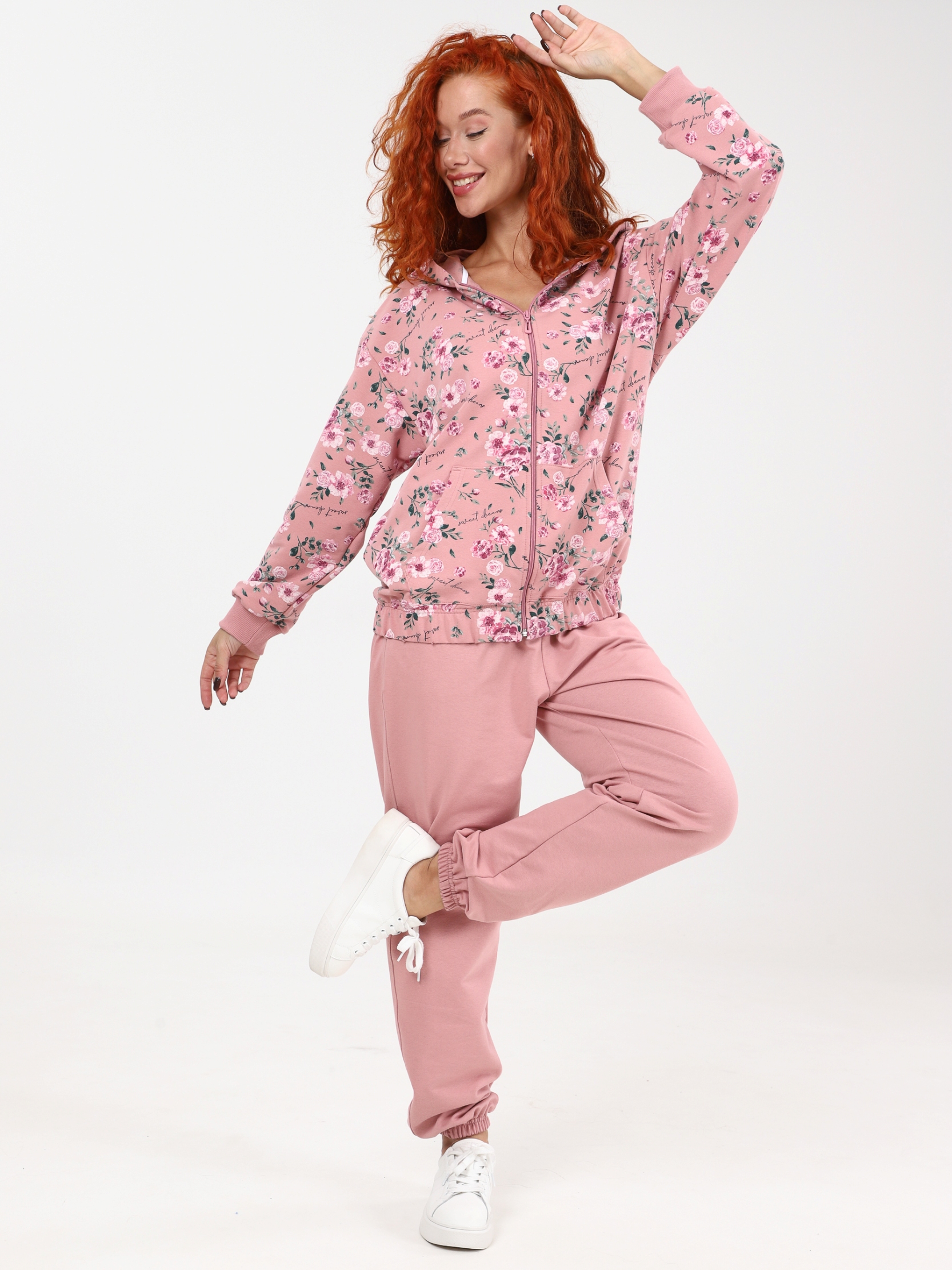 Женский спортивный костюм на молнии больших размеров - идеальный выбор на каждый день. Костюм женский на молнии выполнен из плотного трикотажного материала - футер без начеса. Женский костюм состоит из худи на молнии с капюшоном и брюк джоггеров со средней посадкой и карманами, внизу брючин резинка.  Костюм выдержан в спортивном стиле, что позволяет носить его в различных обстоятельствах. Он уместен в кафе, на прогулке в парке или на спортивной площадке.